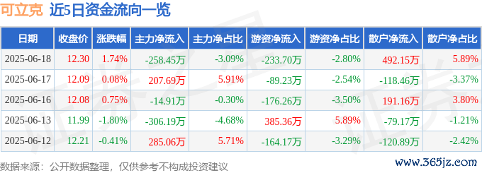 6月18日的资金流向数据方面,主力资金净流出258.45万元,占总成交额3.09%,游资资金净流出233.7万元,占总成交额2.8%,散户资金净流入492.15万元,占总成交额5.89%。