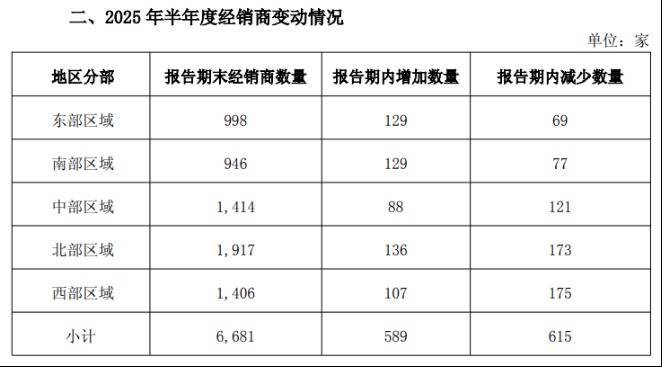 上半年经销商数量再减26家